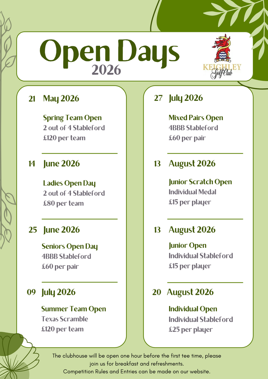 Check out the upcoming events here at Keighley Golf Club. All of the events posted here are open to Members and Visitors.